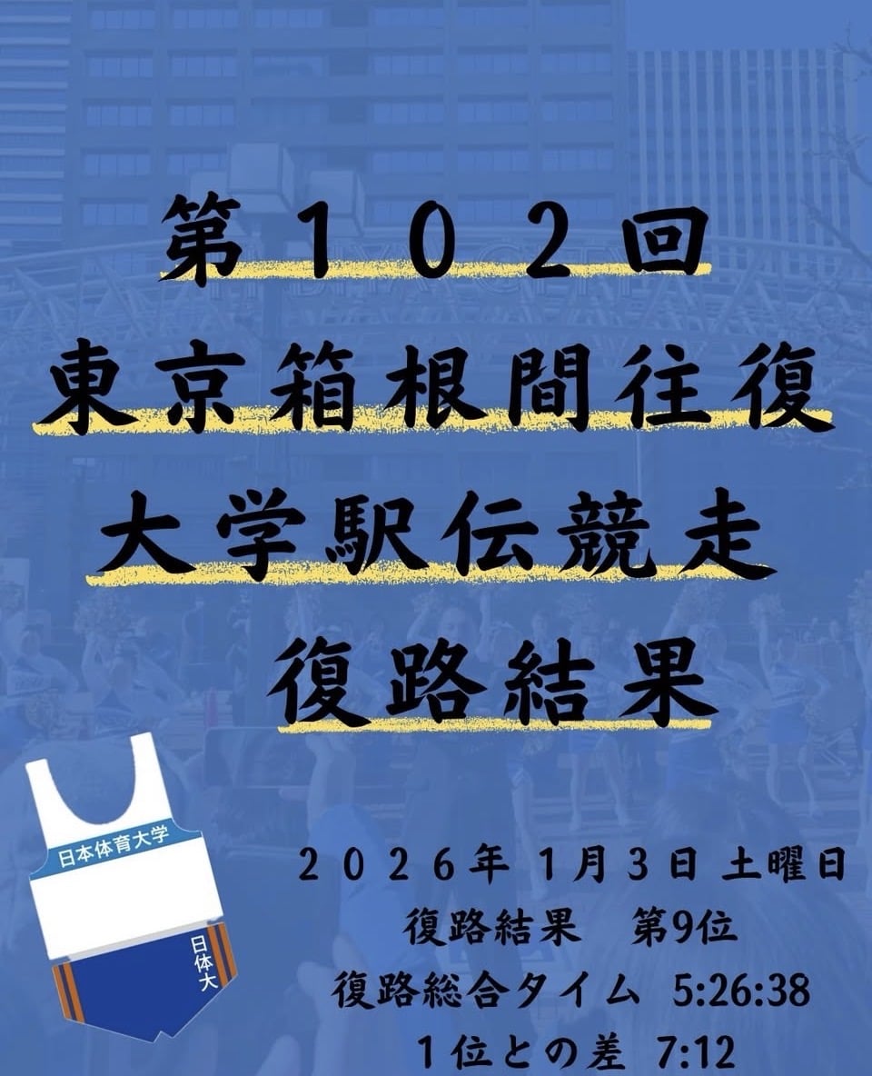 【第102回東京箱根間往復大学駅伝競走 復路結果】