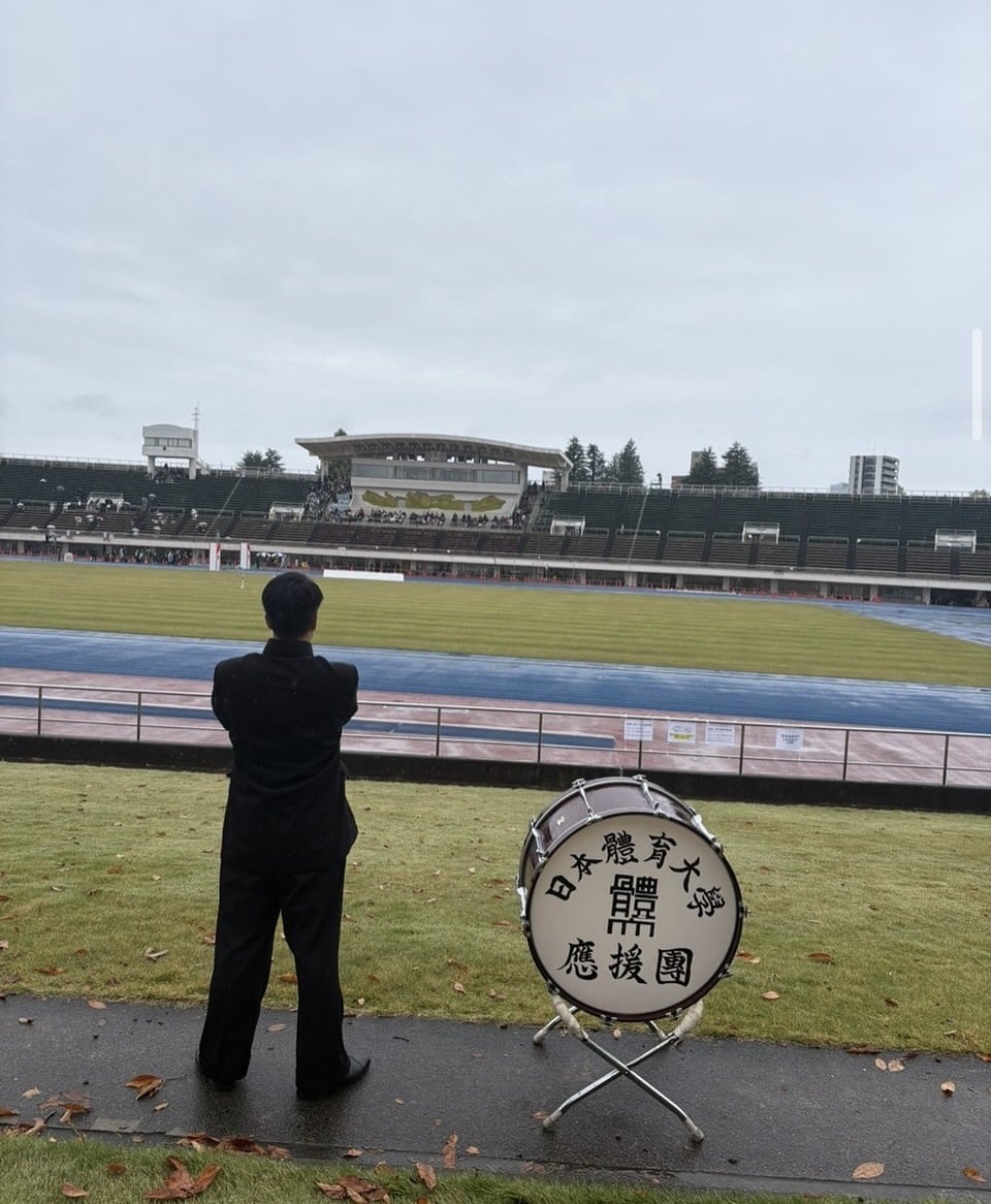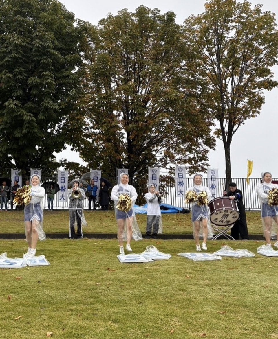 我々応援団部は雨の中、最後まで走りきる選手を鼓舞するため、応援に駆け付けました。