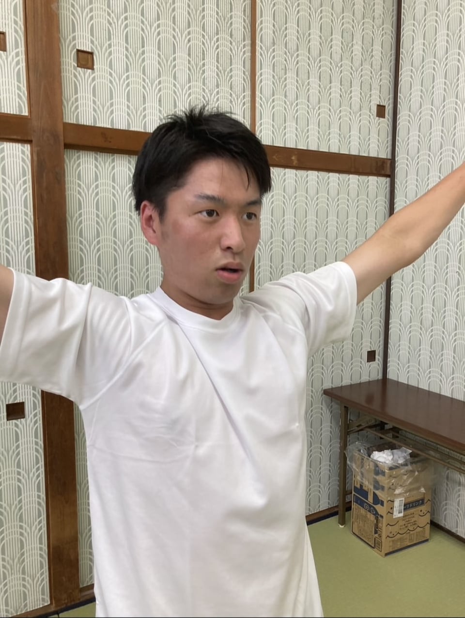 合宿5日目本日は校歌、応援歌、リーダー練習を行いました。写真は塩原祐樹です。児童スポーツ教育学部児童スポーツ教育学科児童スポーツ教育コース1年。第一学院高等学校お肌の弱いことが判明した塩原。日焼け対策を万全に臨みました。
