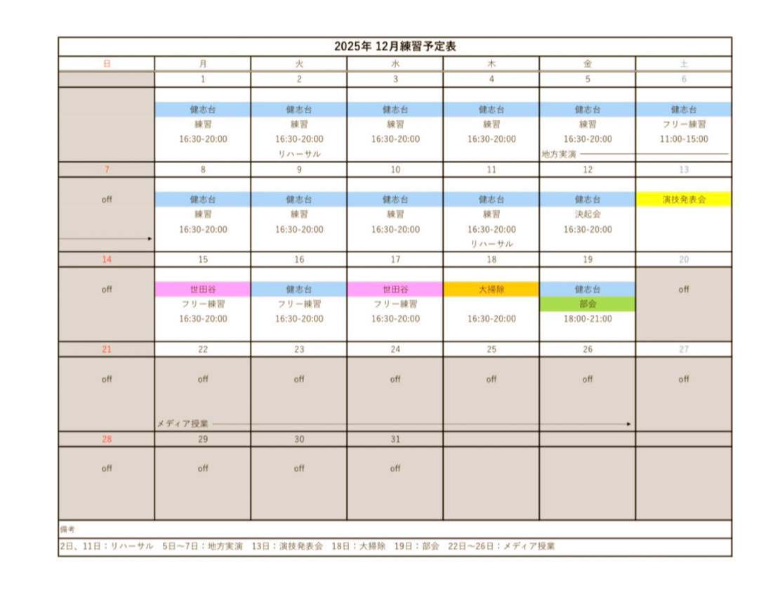 12月2日(火)と12月11日(木)では、演技発表会に向けたリハーサルを行います❗️リハーサルでは、本番を想定した演技ができるよう取り組んでまいります♪