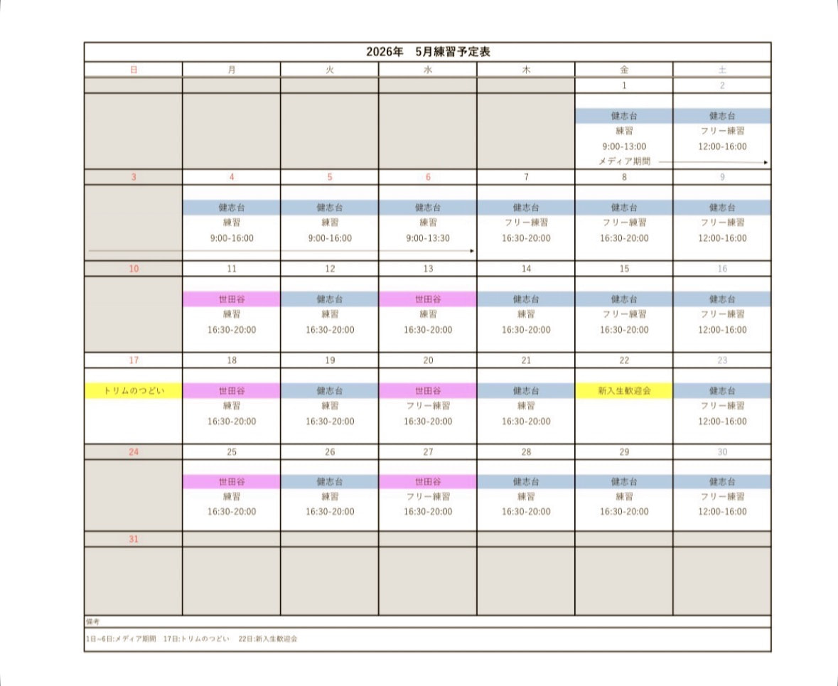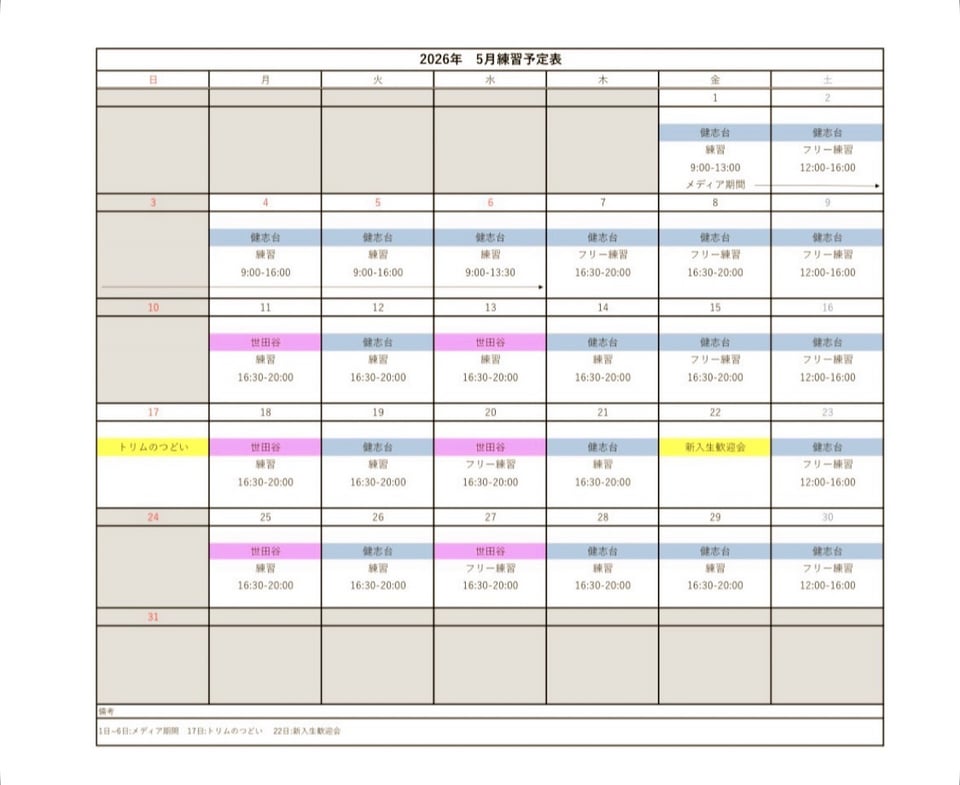 5月1日(金)からメディア授業期間の為、1日練習を行います🗓️