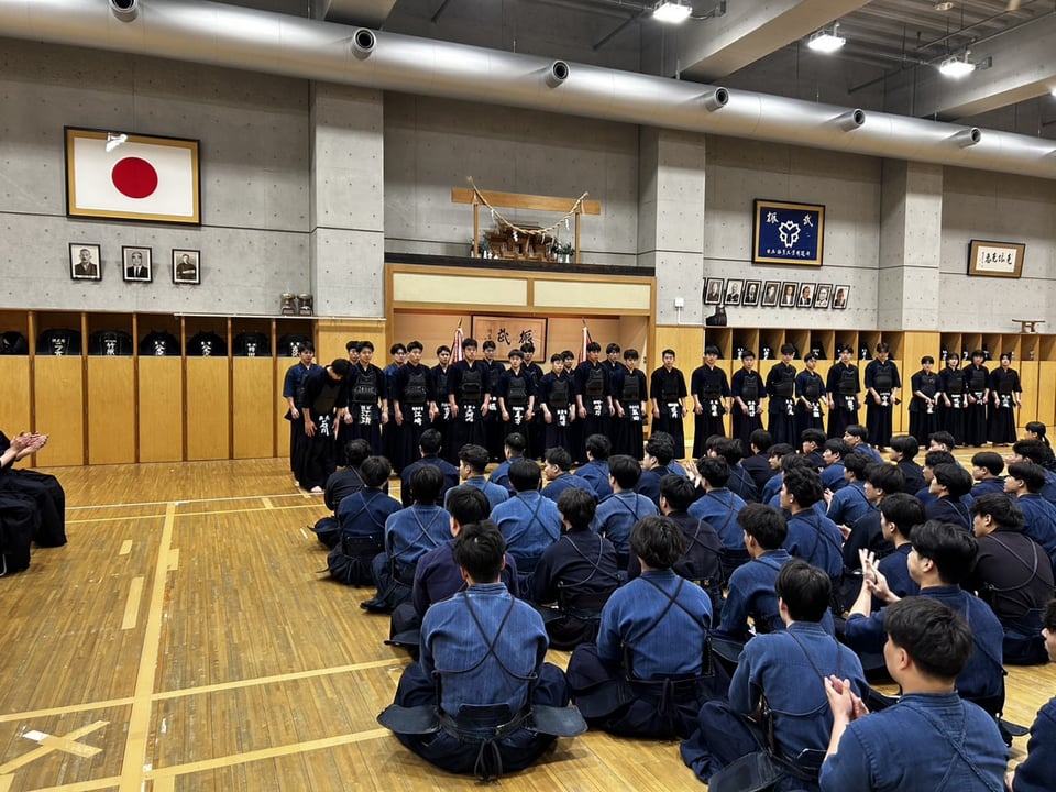 本日の男子の稽古では、朝が素振り、午前は切り返し、技練習、かかり稽古、地稽古、午後は、切り返し、打ち込み、かかり稽古、追い込みを行いました。今日から一年生が稽古に参加となり、人数が増え気が充実した稽古となりました。