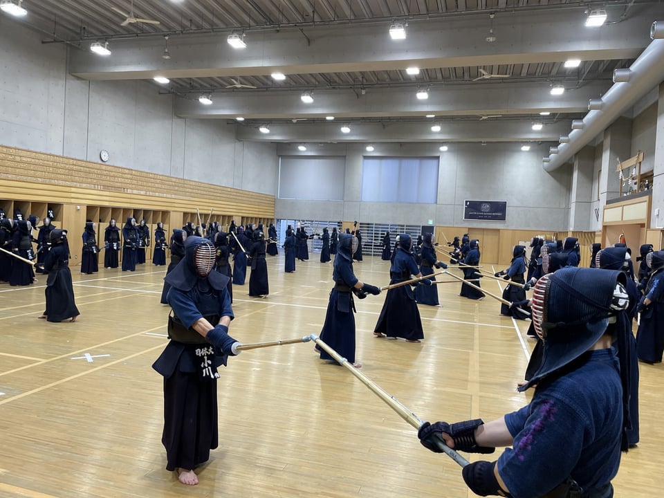 本日の男子の稽古は、午前には大阪教育大学との練習試合。午後には大阪教育大学との合同稽古を行いました。1日を通して、普段は剣を交えられない関西圏の人たちと稽古ができ多くの学びがありました。