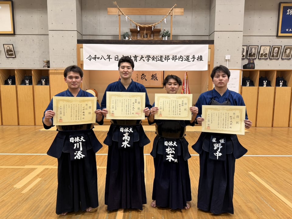 本日は部内選手権を行いました。春合宿の稽古を通じて、以前よりも全員がまとまり気力をげることができ、試合内容も実りあるものとなりました。