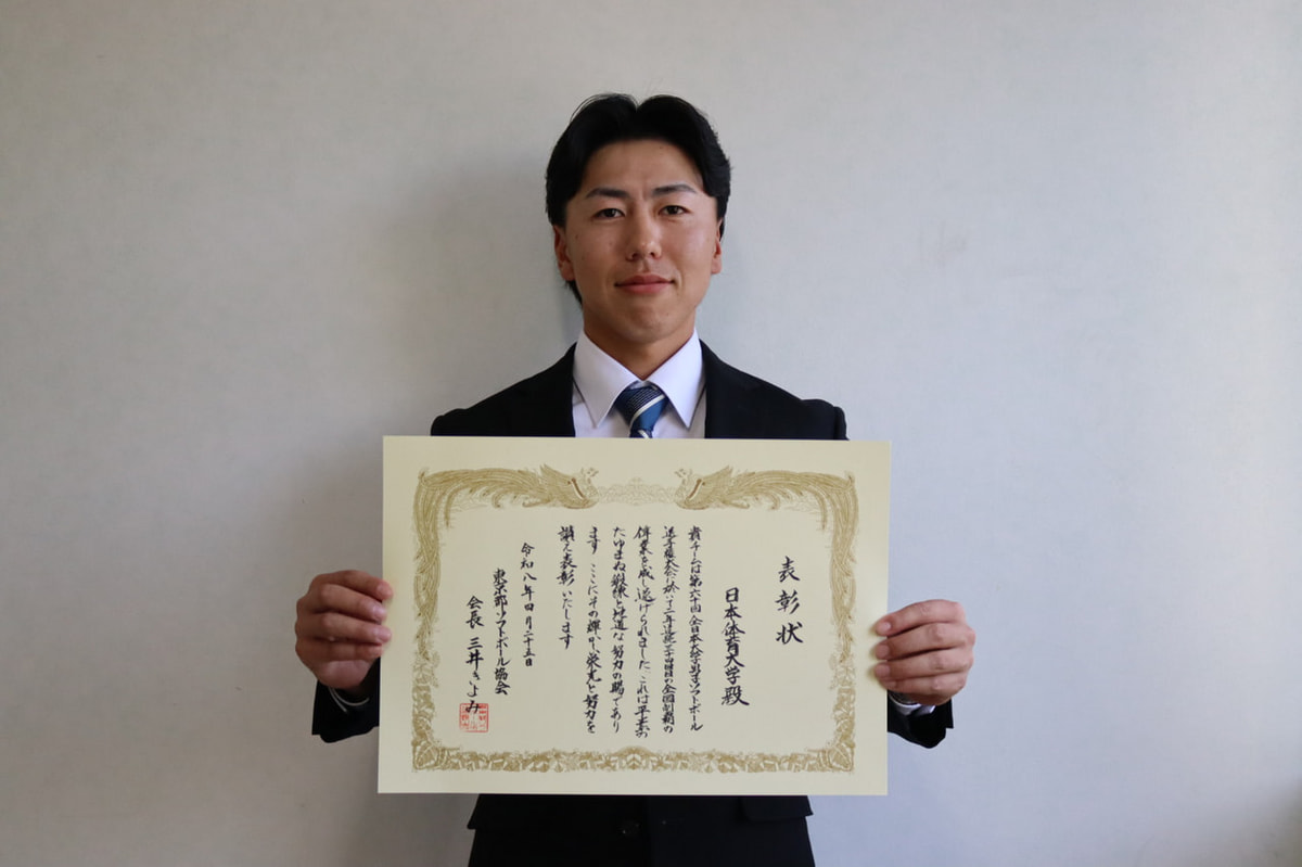本日、小金井前原暫定集会施設にて東京都ソフトボール協会より、インカレ2連覇を称えた表彰式を開いて頂きました。